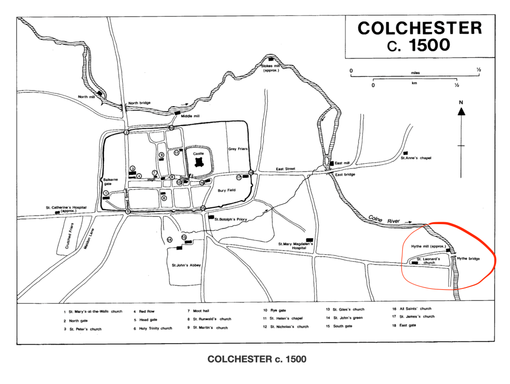 [1] See Janet Cooper et al., eds., ‘Medieval Colchester: Growth of the town’, A History of the County of Essex: Volume 9: The Borough of Colchester (1994), at British History Online.