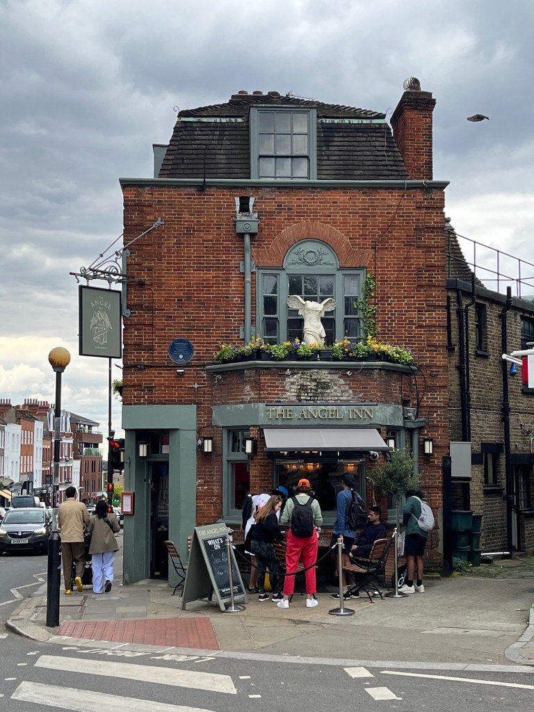 Eustas was mentioned in a previous case in the Consistory; a couple in a disputed marriage case, Thomas Hall and Denise Pogger, were said to have wished to flee to his house in Highgate to escape those who challenged the marriage. Eustas was a brewer and possibly operated an inn (he evidently also had some income from crops and animals by evidence of this case). Records indicate that from 1490 he lived in the “Cornerhouse” in Highgate, beside the High Street at the junction with South Grove. VCH Middlesex, 6:122-135. In a fun coda (fun at least for me!), a few years ago I was in Highgate, having just visited the (absolutely enchanting) Highgate Cemetery, when my husband and I stopped for a drink in The Angel Inn on Highgate High Street. I thought of Giles Eustas and this case, looked this entry up on my phone, and spent some time with the linked documents above – after which I came to the conclusion that the Angel Inn is on the same site as Giles Eustas’s inn. I wonder if it has continuously been an inn and tavern from the late medieval period.